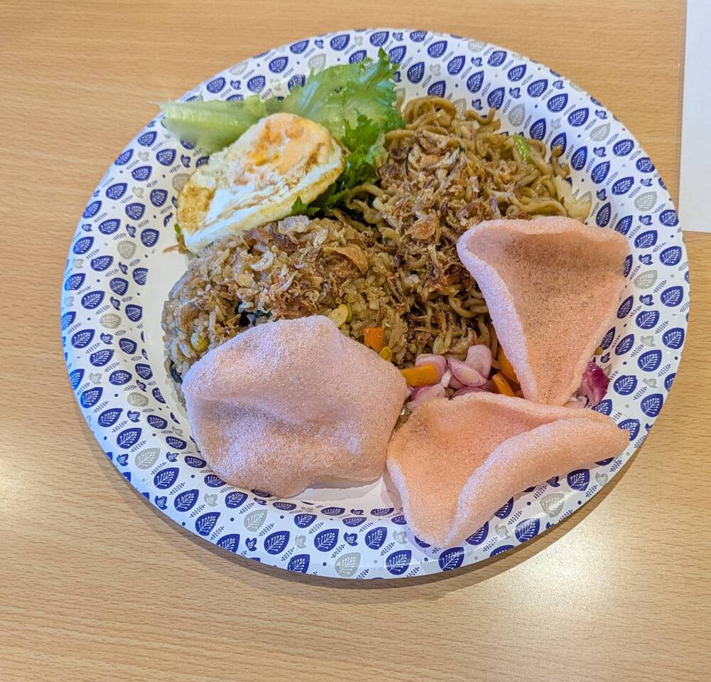 メニューにはありません、ナシゴレンとミーゴレンのハーフ&ハーフ。