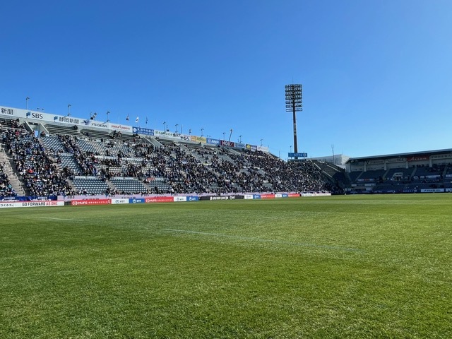 ピッチ上からですと、当社のロゴが良く見えませんでしたね。