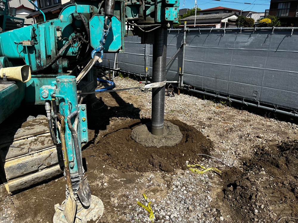 新社員寮の地盤改良工事が始まりました。