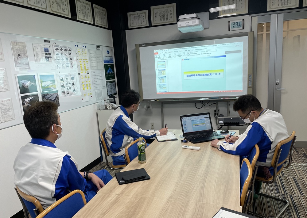 一方2階食堂では、新入社員の安全教育をWEBで開催しております。