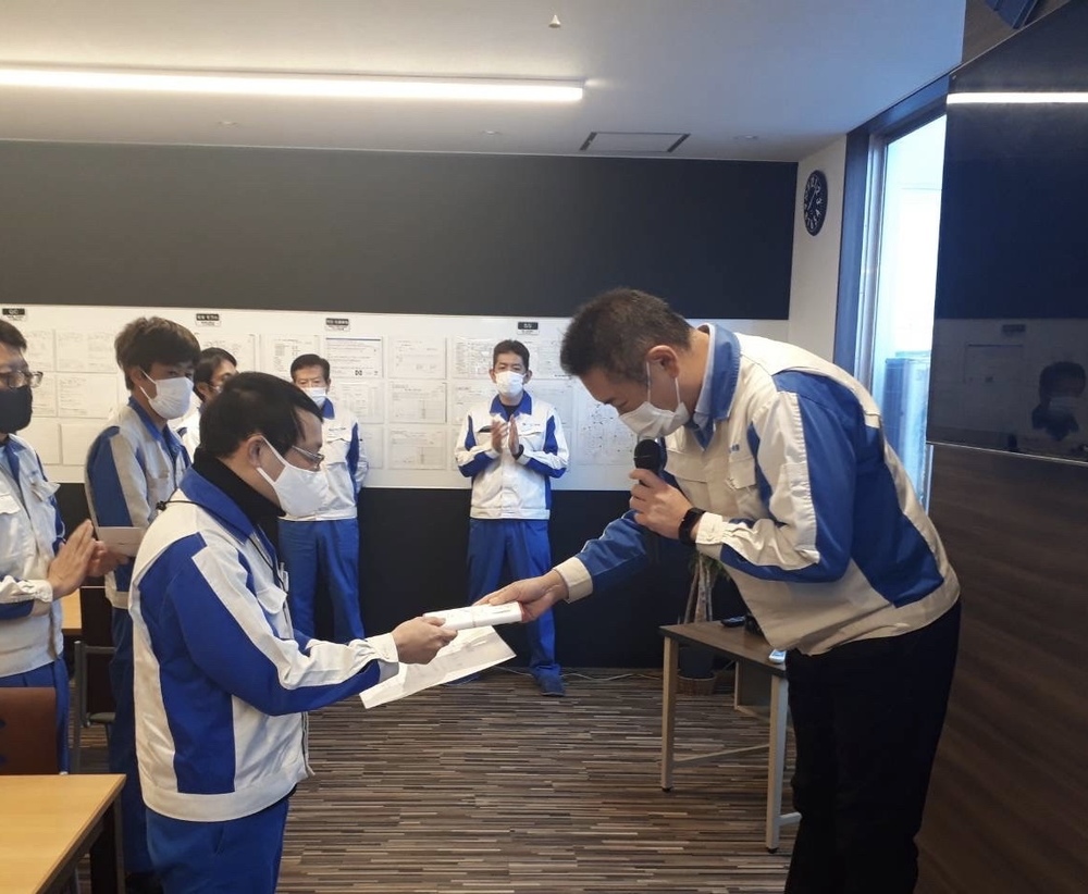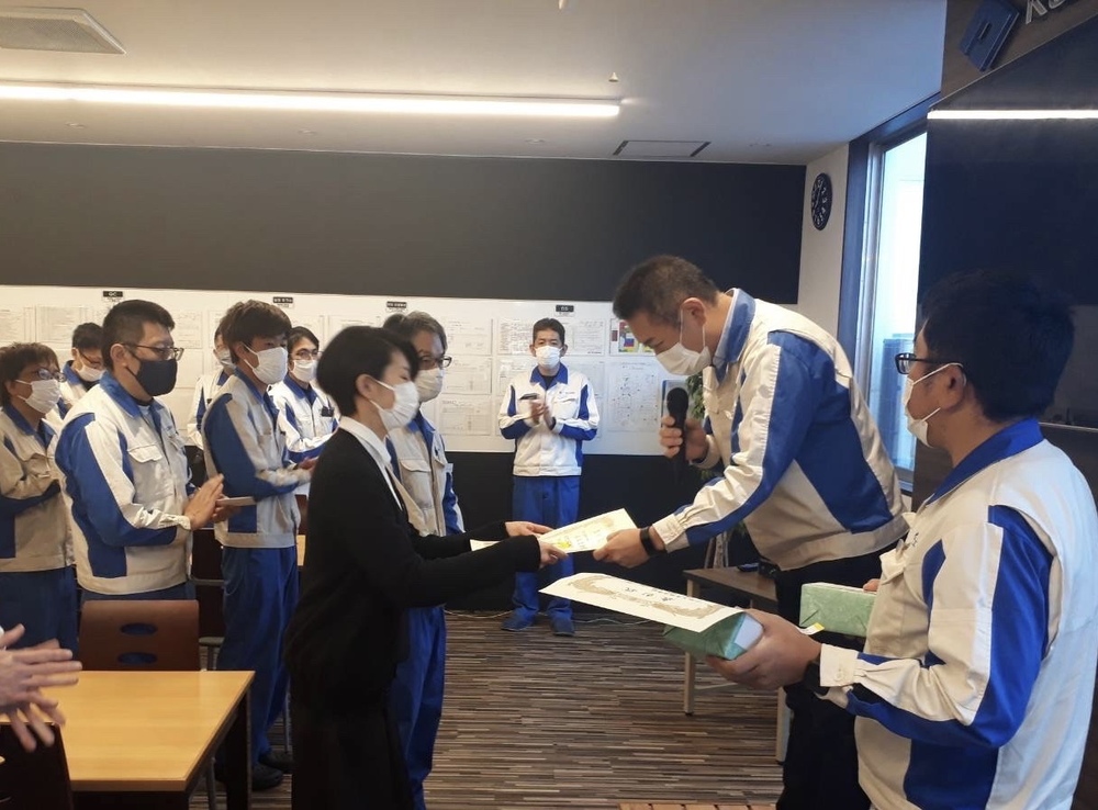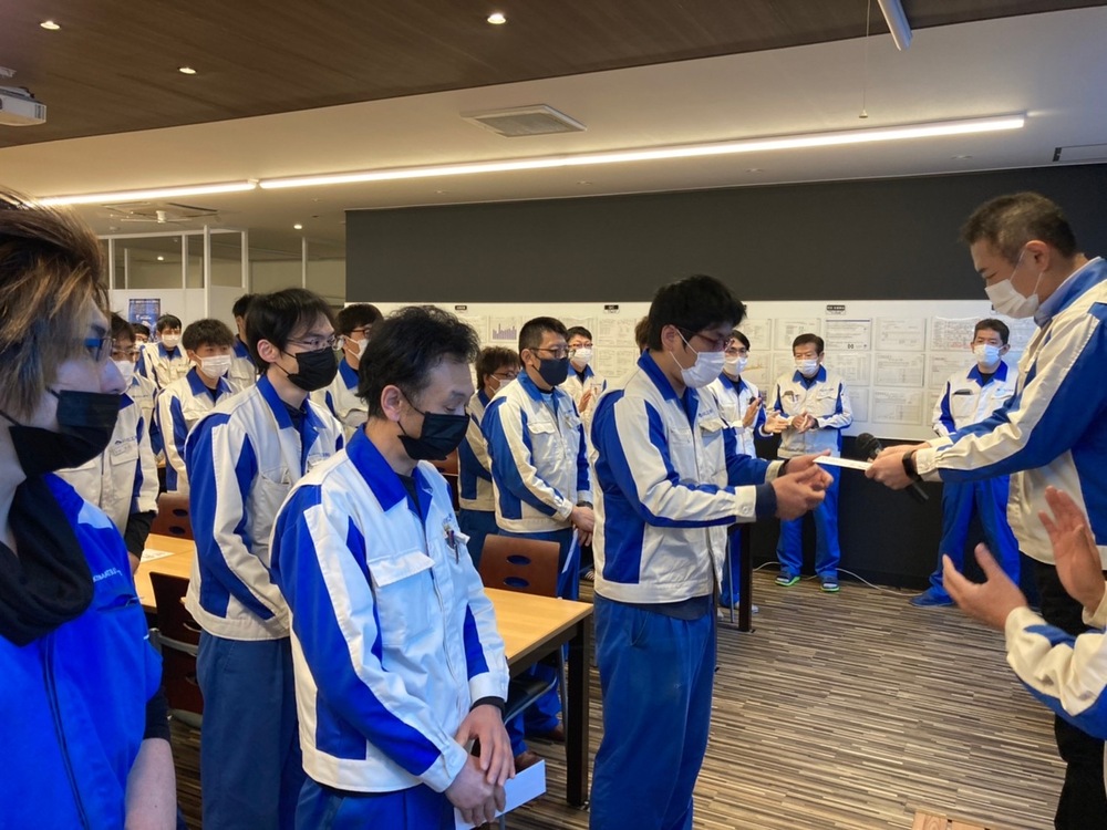 社内5Sコンクール。3ブロックを表彰。