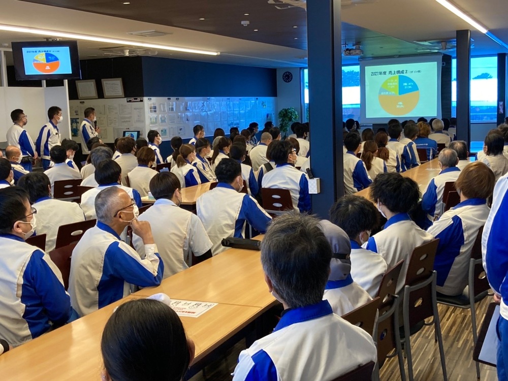 3月度の全体朝礼は「蔓延防止措置」期間中で実施しませんでしたので、全体で集合するのは久しぶりとなります。