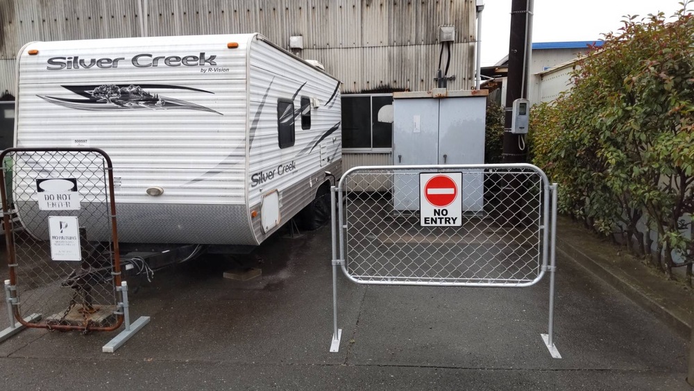 別件で変電室前、車止めのバリアを変更しました。