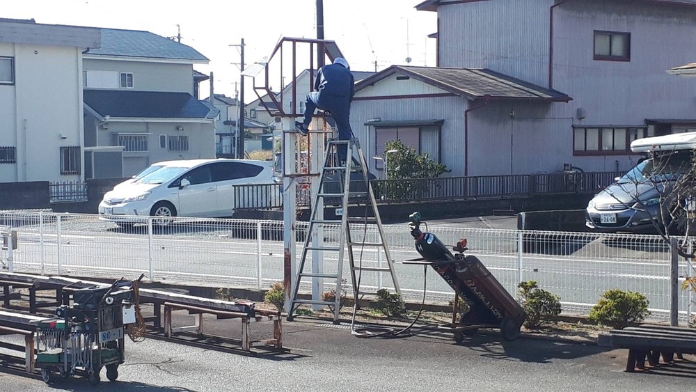 経年劣化で暴風雨の際に危険では?という事でこちらの看板を撤去しました。