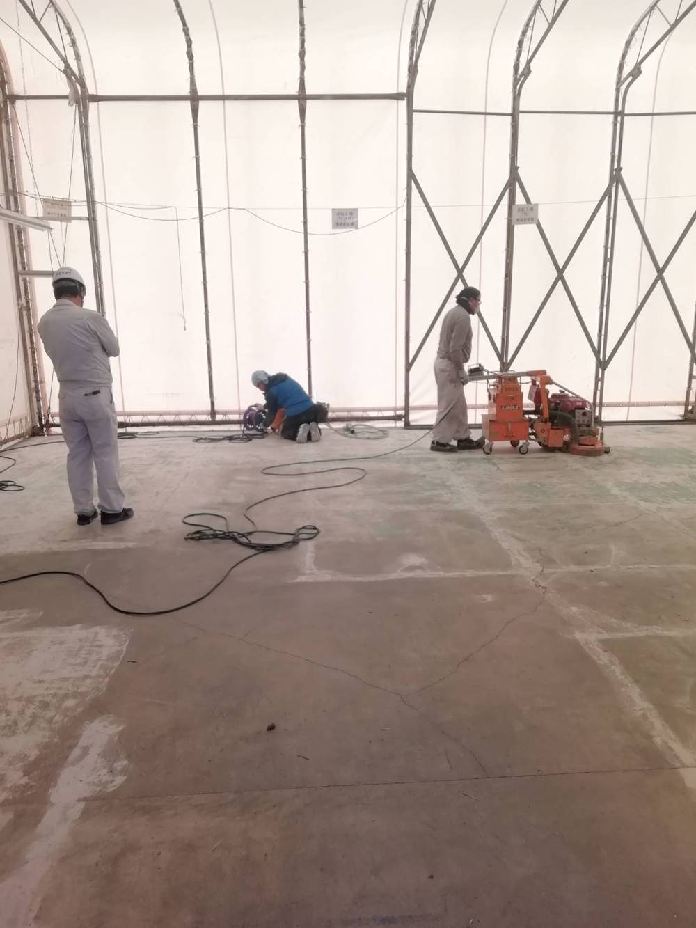 ストックヤードの床の塗装を剥がしてます。