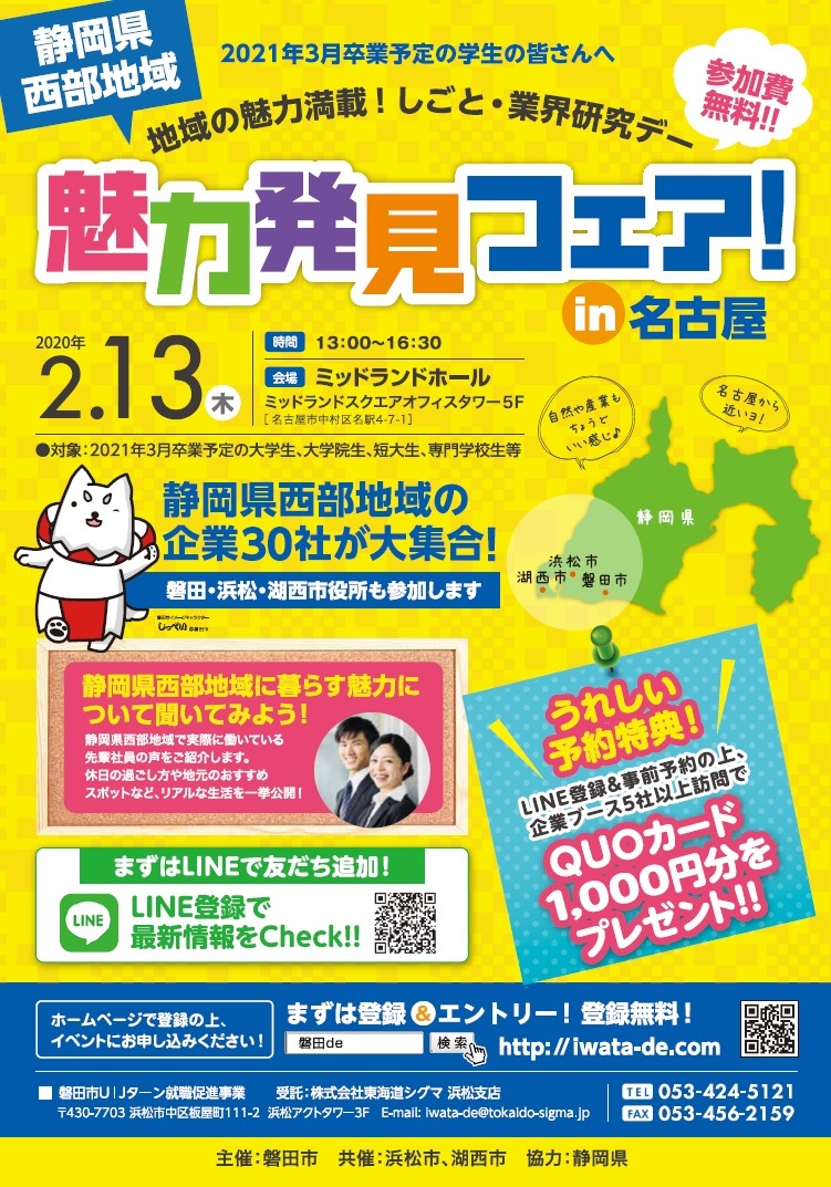静岡県西部地区へ(特に磐田市へ) U I Jターン就職をぜひ!!