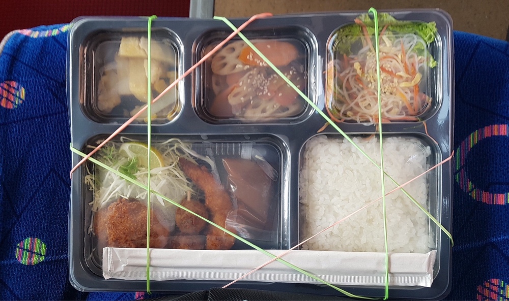 昼食はバスの中で日本食を。
