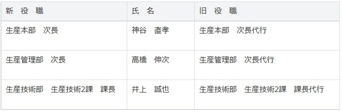 小松工業株式会社は、2018年04月21日付で昇格人事を次の通り行った。